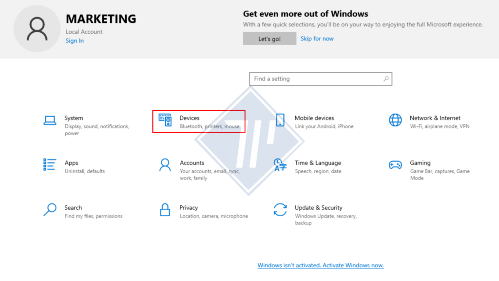 - Bước 2: Trong phần Cài đặt, chọn Thiết bị (Devices).