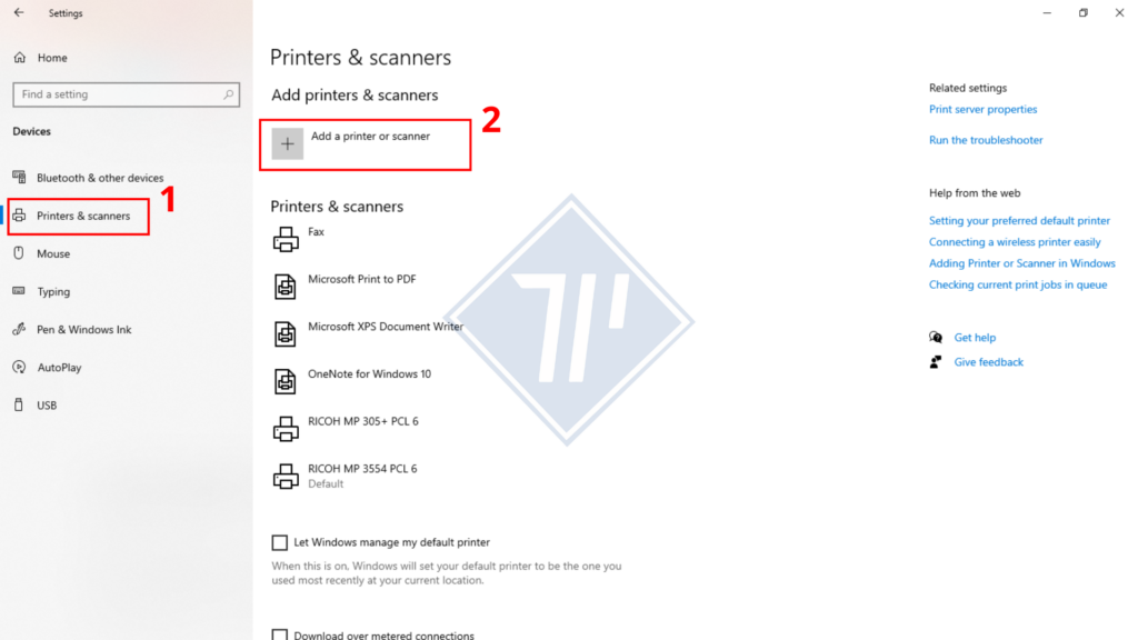 - Bước 3: Tiếp tục chọn Printers & scanners > Add a printer or scanner để thêm máy in. Bạn cũng có thể dùng cách tương tự để thêm máy photocopy cũng như các thiết bị hỗ trợ in ấn, scan khác.