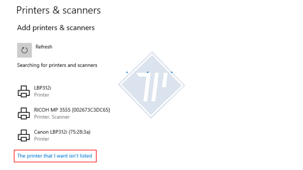 - Bước 5: Nếu thiết bị không nhận diện và hiển thị tên máy in, bạn hãy chọn The printer that I want isn’t listed.