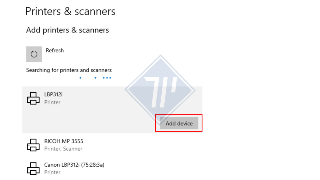 - Bước 4: Khi tên máy in xuất hiện, hãy click vào máy in của bạn và bấm Add device. Chờ một lúc để hai thiết bị được kết nối với nhau. Sau khi kết nối thành công, trong trường hợp cần thêm phần mềm, bạn có thể bấm chọn Get app để tải và cài đặt các ứng dụng từ Microsoft Store.