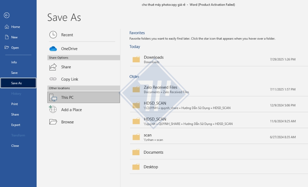 - Bước 2: Chọn vị trí bạn muốn lưu file. Ví dụ: This PC, OneDrive, Browse,…