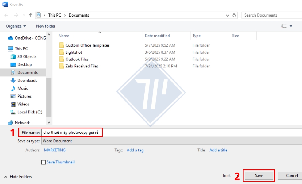Khi tạo một tài liệu Word mới, bạn sẽ sử dụng chức năng Save As để lưu file trong lần đầu tiên. Chức năng này cho phép bạn đặt tên file và chọn vị trí lưu linh hoạt.