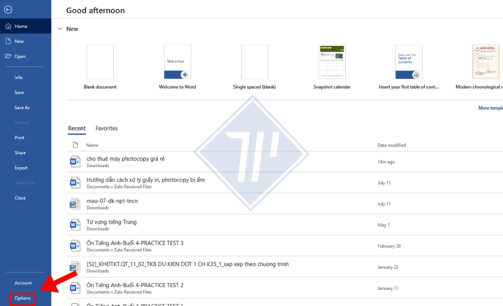 - Bước 1: Vào File trên góc trái thanh công cụ > Chọn Options.
