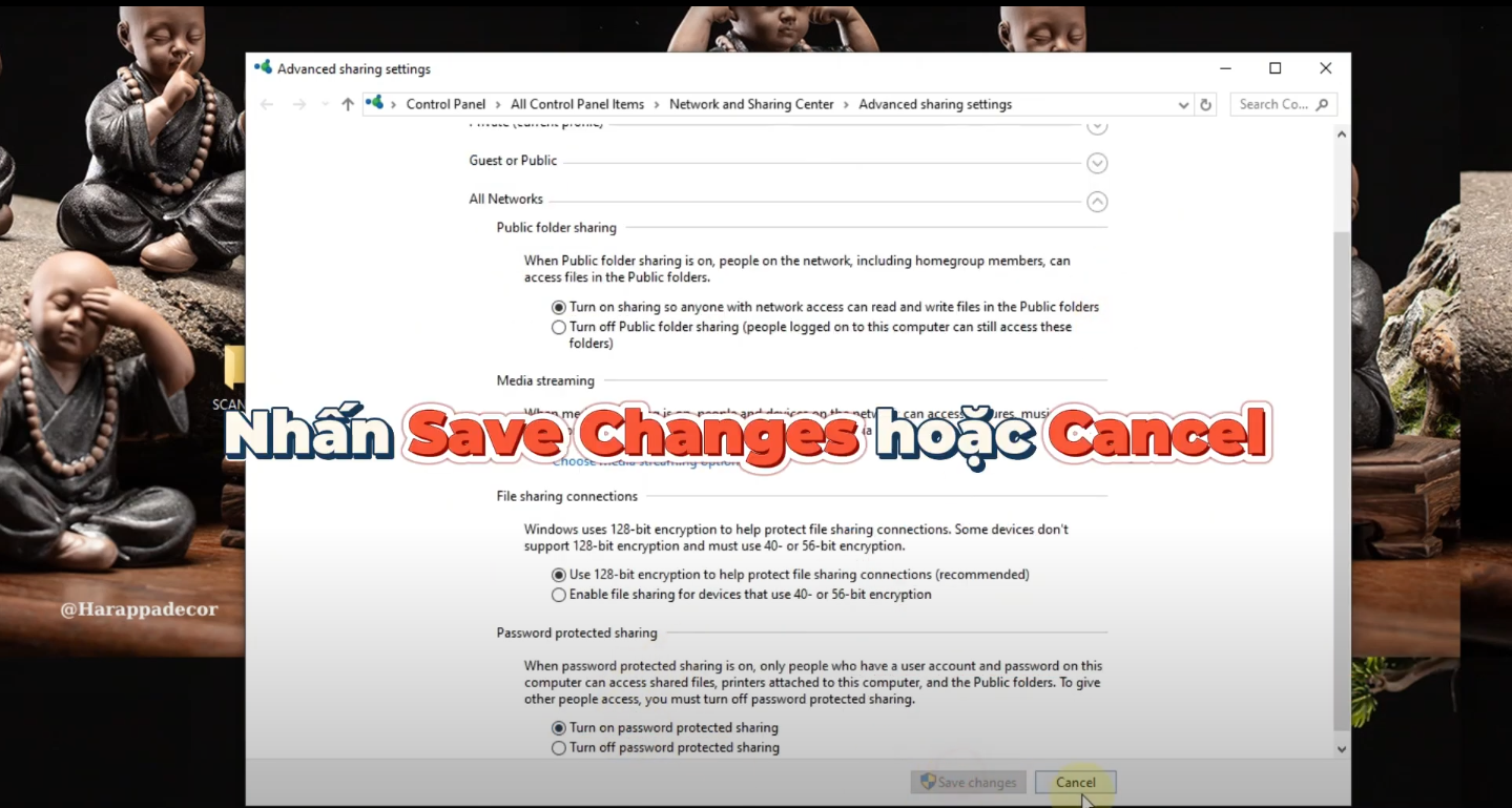 - Quay về cửa sổ Advanced Sharing > Nhấn Apply > OK.
