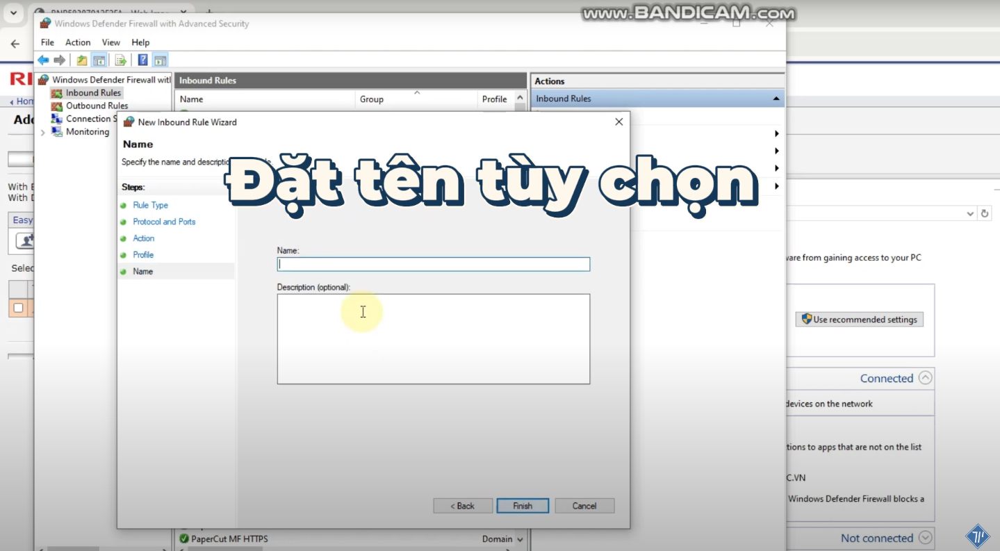 - Tại mục Inbound Rules, chọn New Rule.