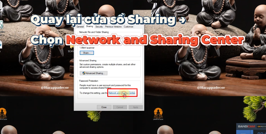 - Quay lại cửa sổ Sharing > Chọn Network and Sharing Center.