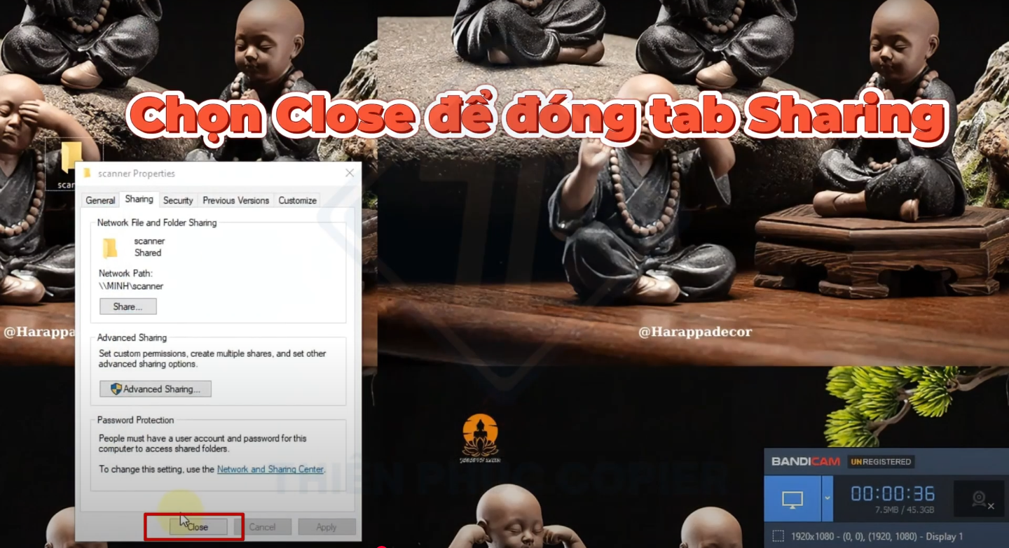 - Quay lại tab Sharing trong scanner Properties > Bấm vào Advanced Sharing.