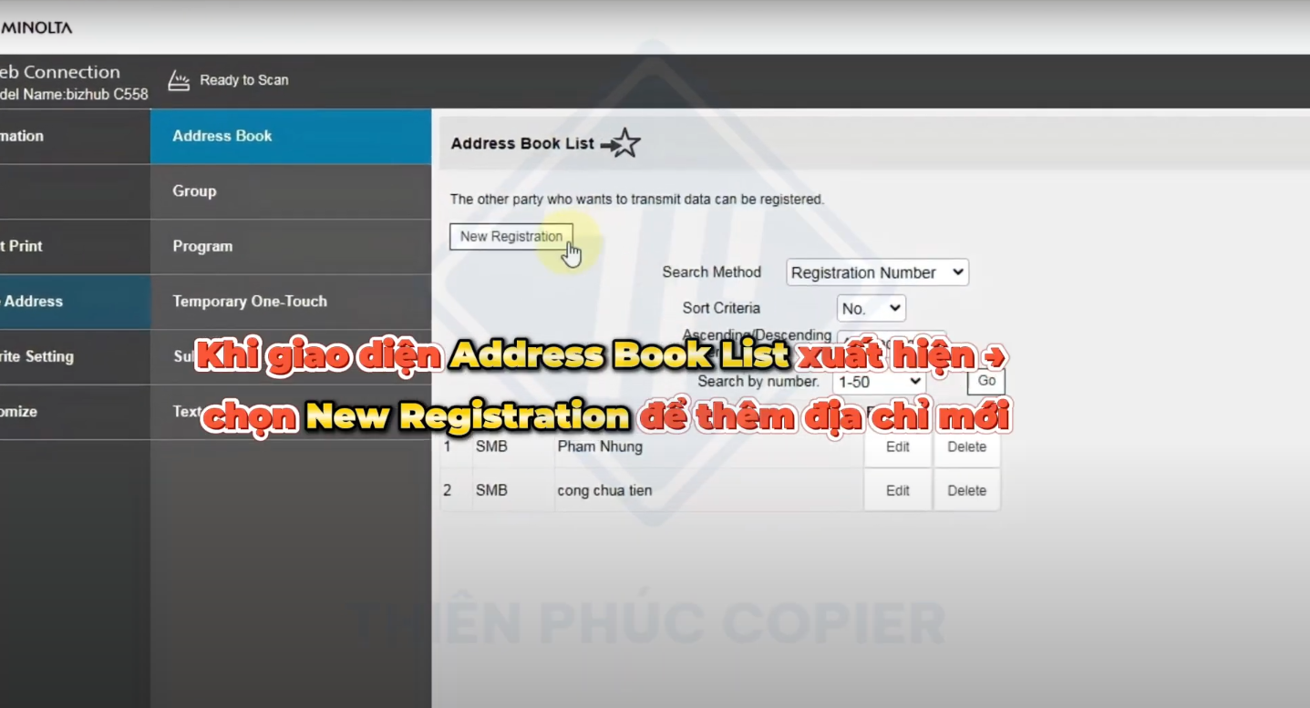 - Khi giao diện Address Book List xuất hiện, nhấn vào New Registration để thêm địa chỉ mới.