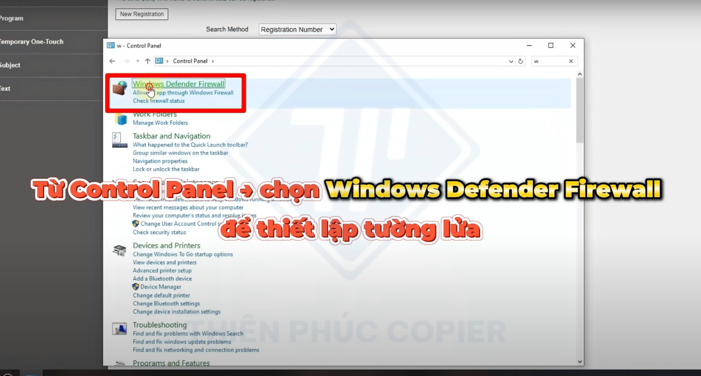 - Mở Control Panel trên máy tính > Chọn Windows Defender Firewall để thiết lập tường lửa.