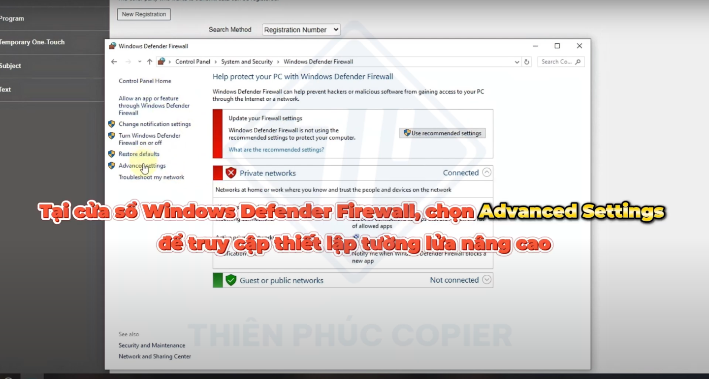 - Tại đây, chọn Advanced Settings để truy cập thiết lập tường lửa nâng cao.