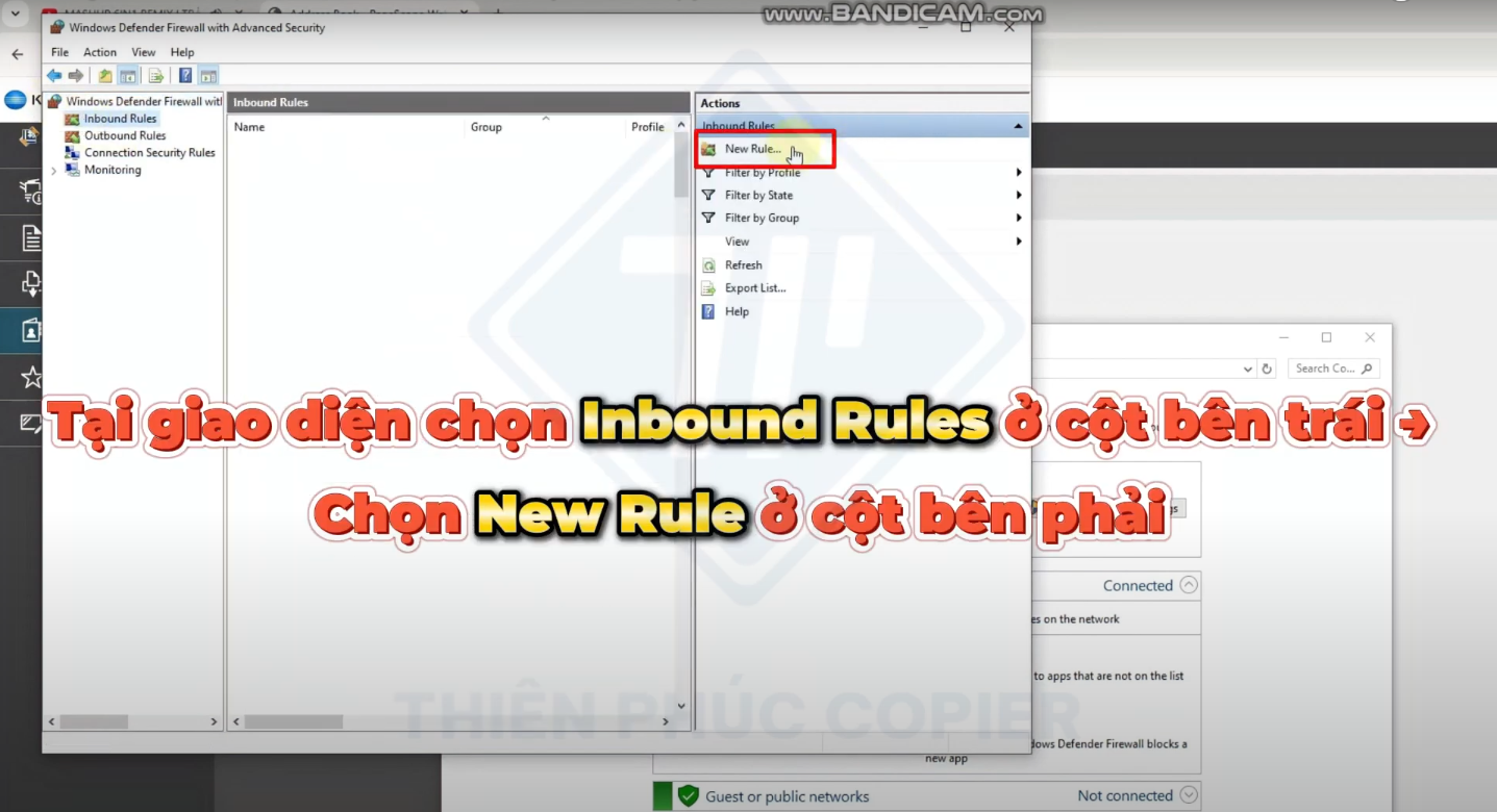 - Khi cửa sổ mới hiện ra > Bấm vào Inbound Rules > New Rule.