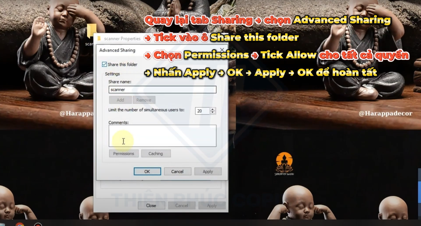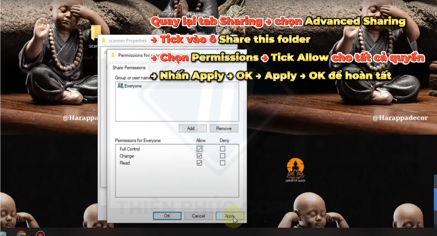 - Khi quay lại tab Advanced Sharing, tiếp tục chọn Apply > OK.