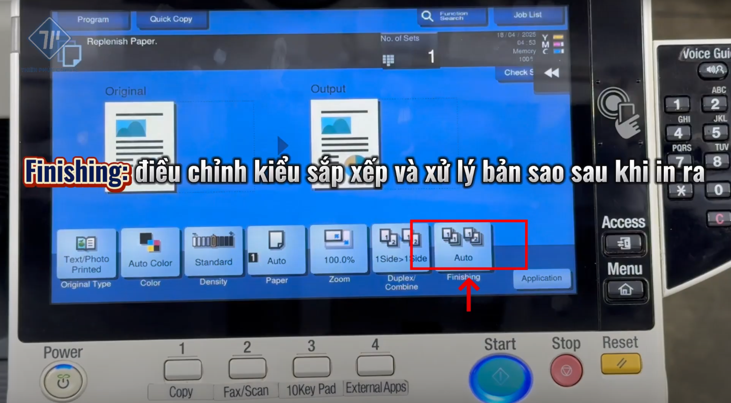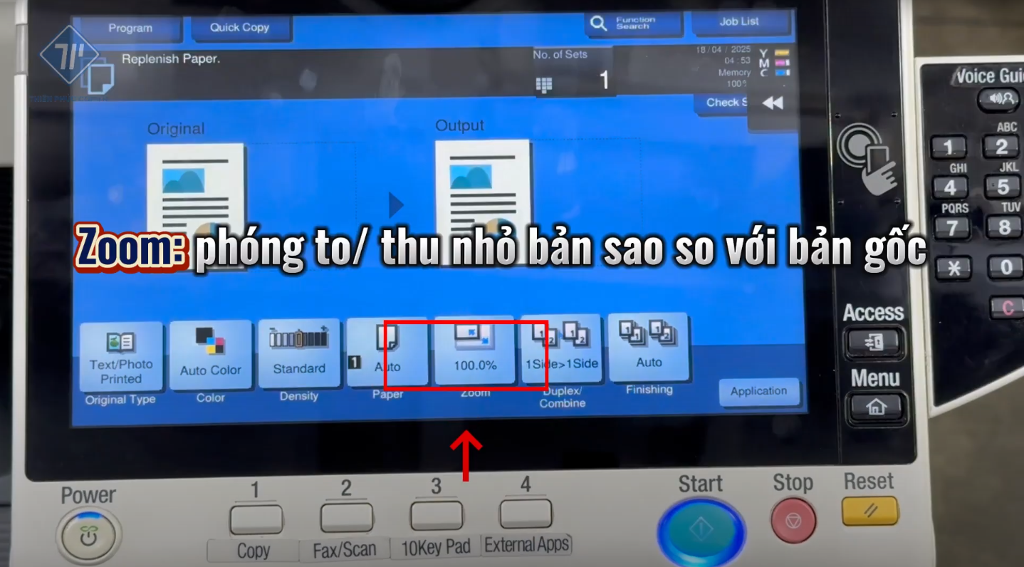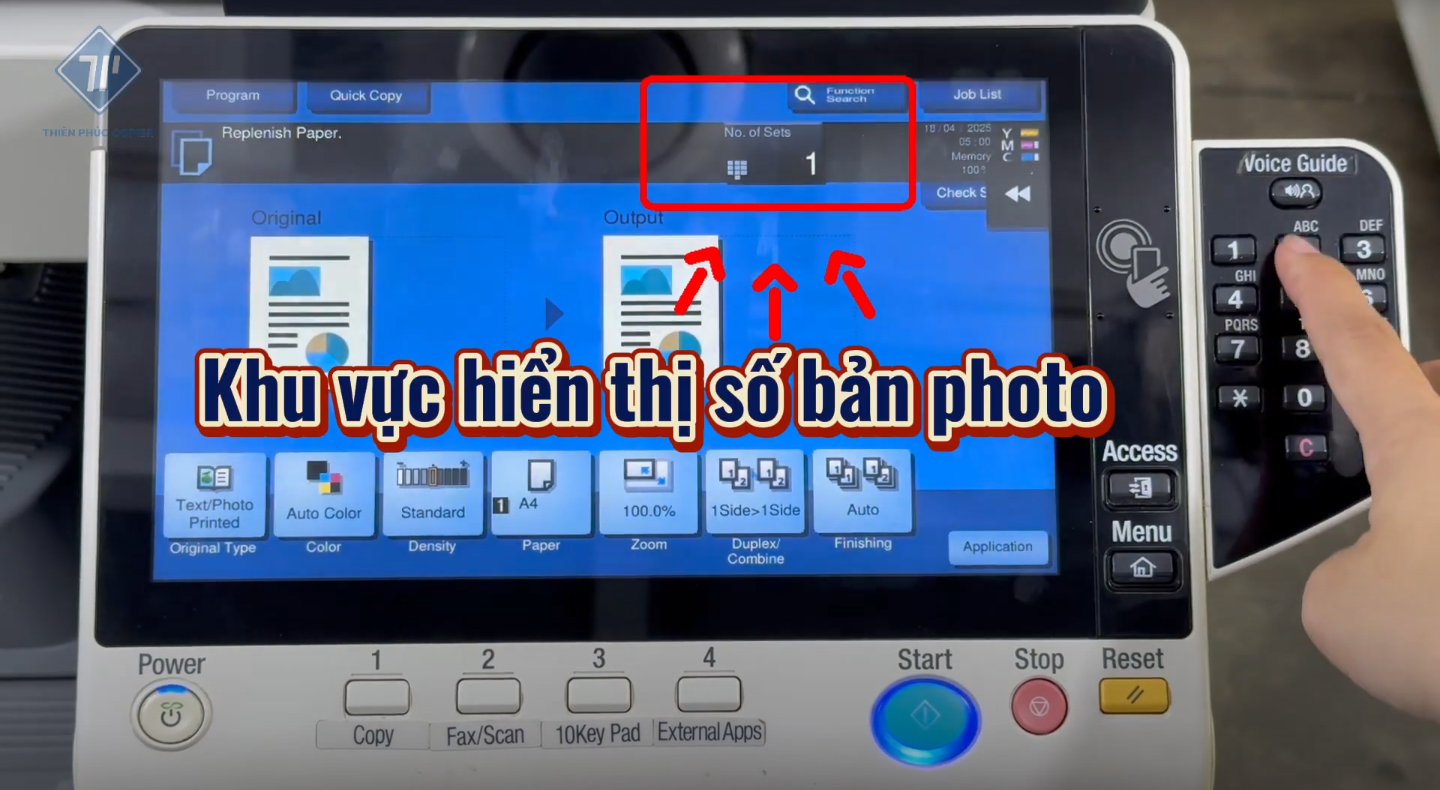 - Điều chỉnh số bản photo bằng bàn phím vật lý.