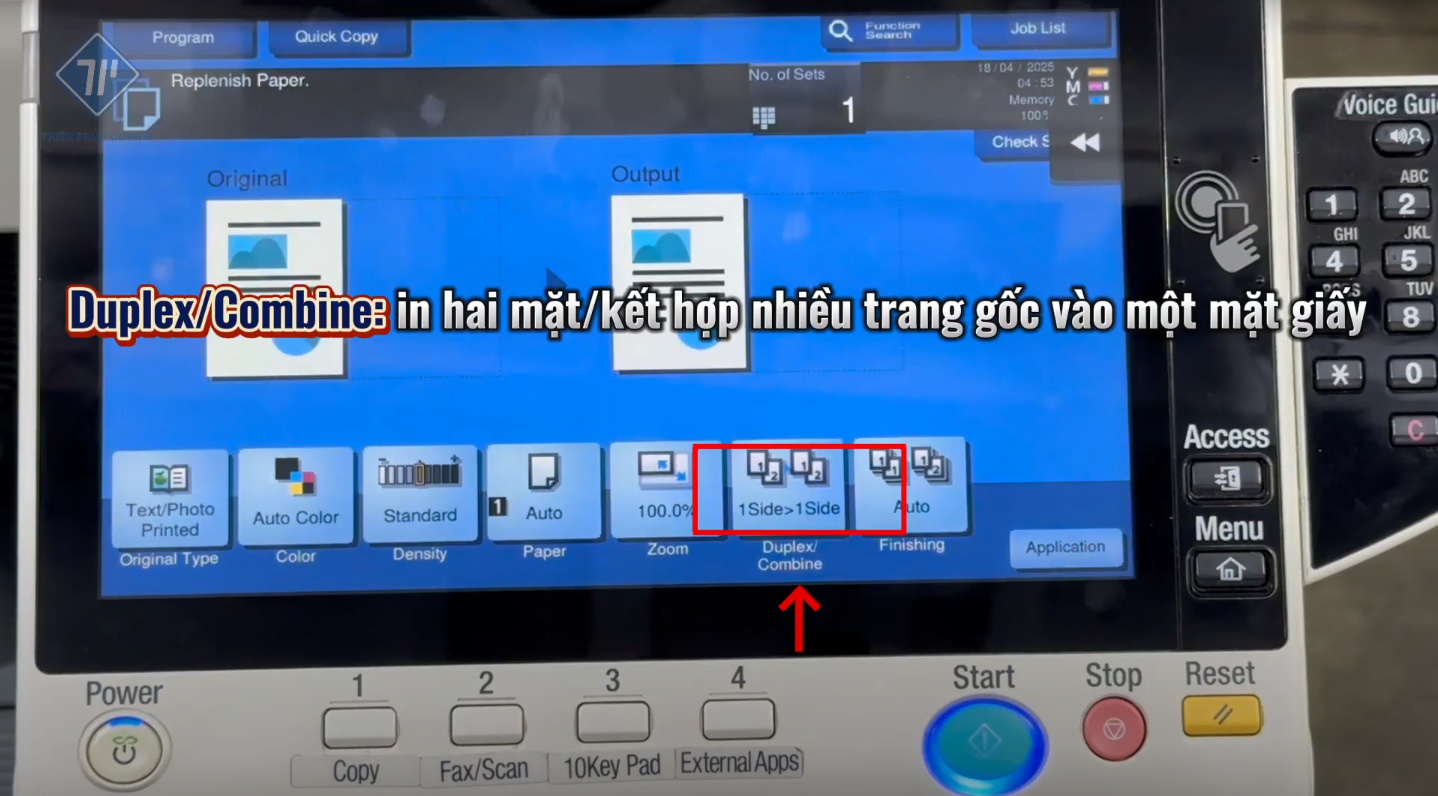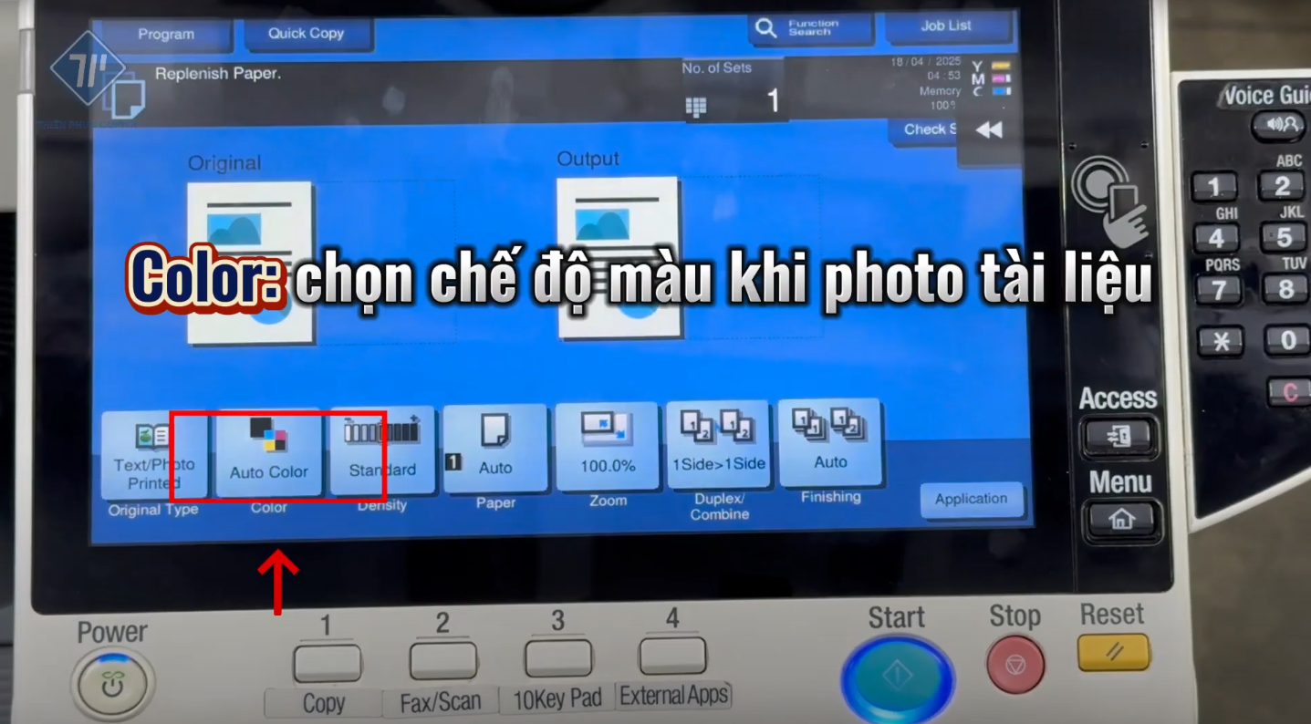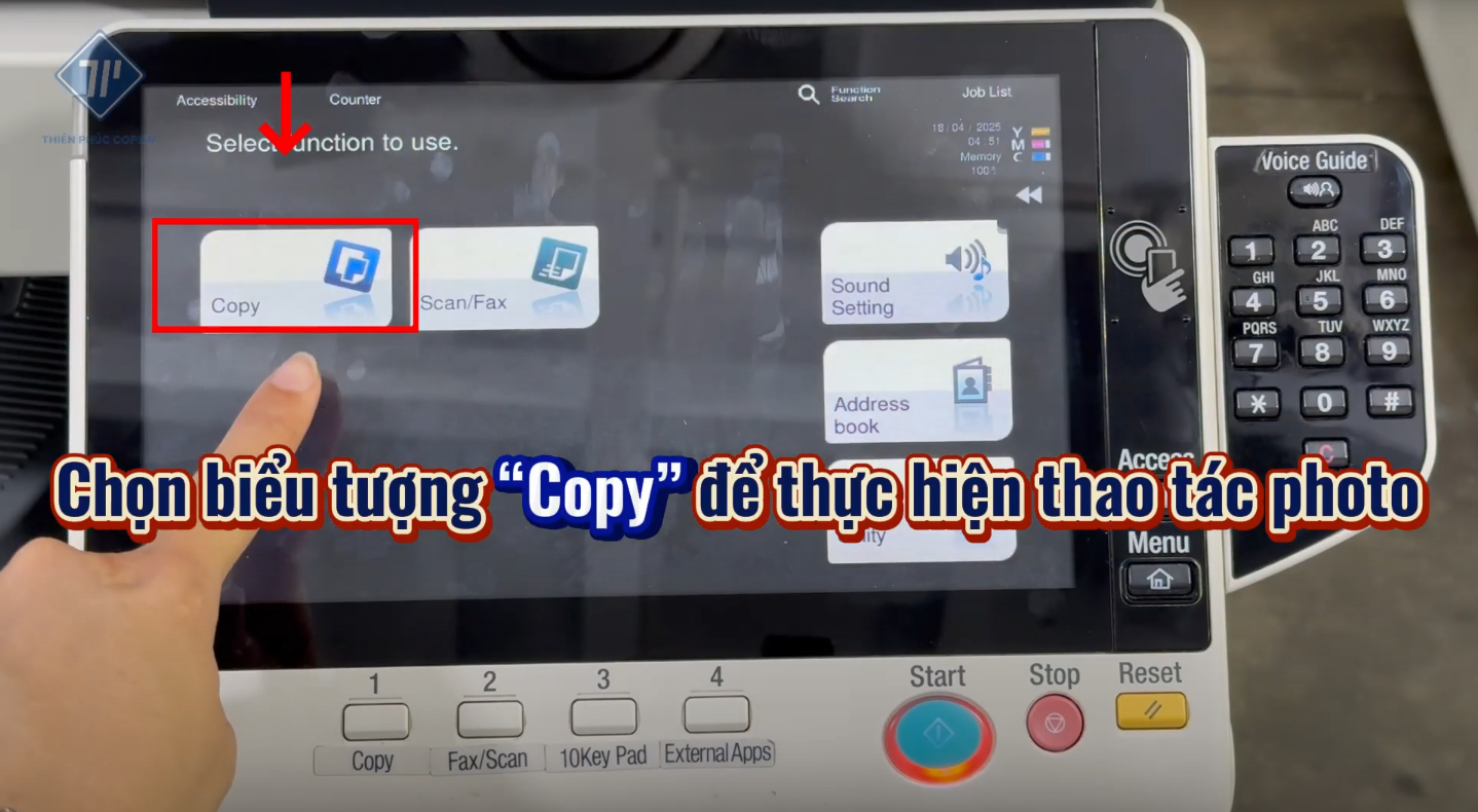 - Điều chỉnh số bản photo bằng bàn phím vật lý.