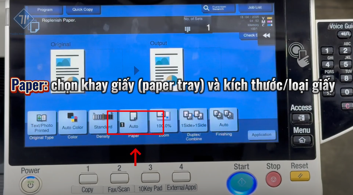 - Paper: Chọn khay giấy và kích thước giấy. Lưu ý: Nếu chọn Auto và khổ giấy ở mỗi khay có kích thước giống nhau, máy sẽ mặc định lấy từ khay thùng.