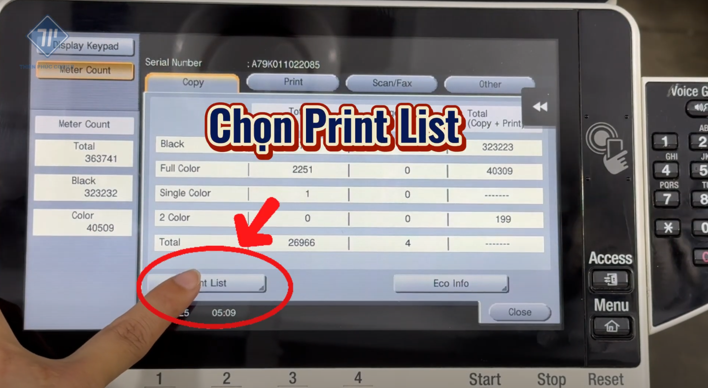 Chức năng In Counter của máy photocopy Konica