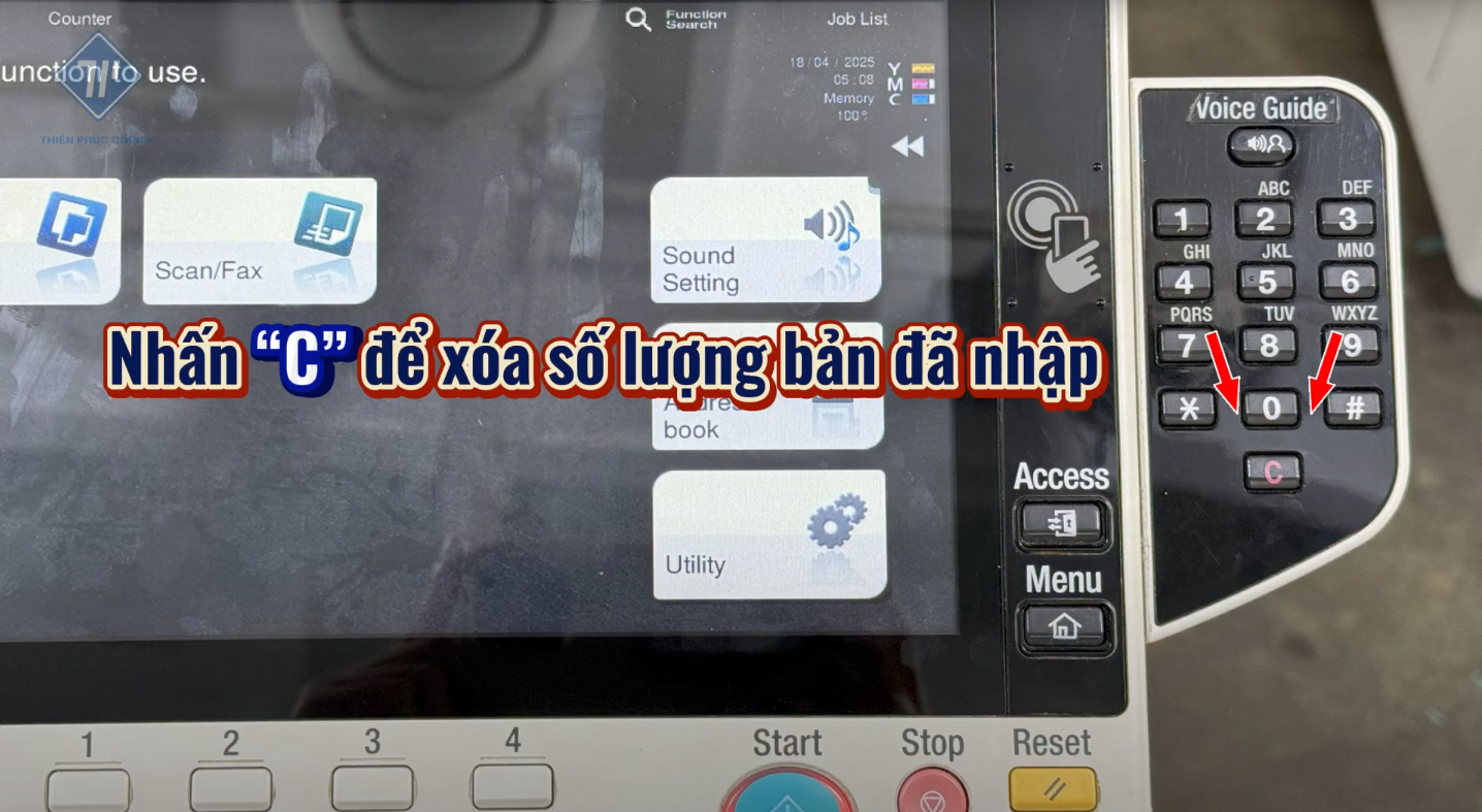 - Nút C: Xoá số lượng bản in đã nhập.