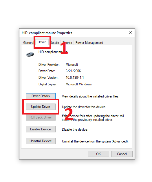Driver cài đặt không đúng với model thiết bị