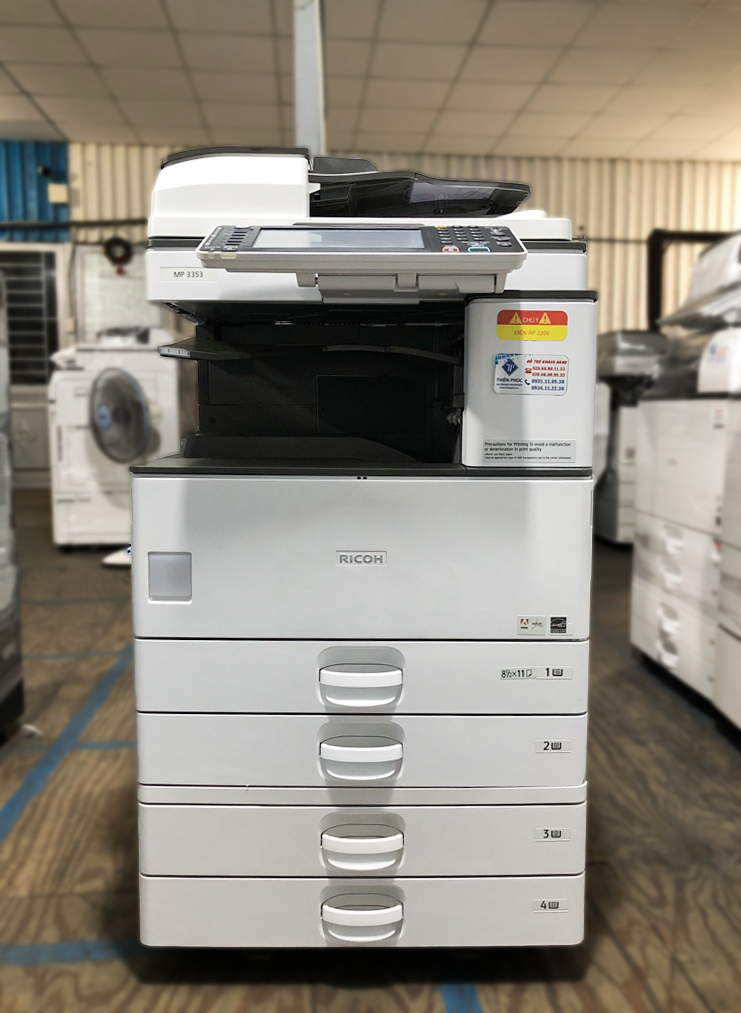 Ricoh Aficio MP 3353 là dòng máy với đầy đủ các chức năng cơ bản dành cho người dùng nhân viên văn phòng, chẳng hạn như in - photocopy - scan. Thiết bị sở hữu tốc độ in/photocopy trung bình 33 tờ/phút với độ phân giải 600dpi, tạo ra những bản in trắng đen sắc nét nhất. Đồng thời với bộ đảo tài liệu tự động 100 tờ tiêu chuẩn (ARDF), người dùng có thể quét tối đa tới 79 hình ảnh màu hoặc đơn sắc trong mỗi phút.